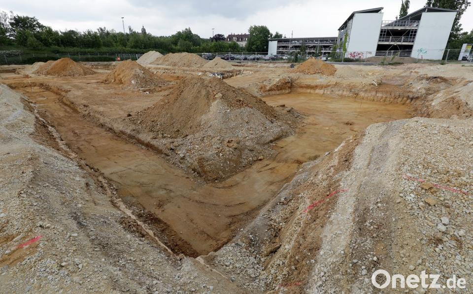 Es habe keine bösen Überraschungen beim Erdaushub gegeben, sagt Tim Schmidt, Projektmanager der Firma Goldbeck. "Wir wussten ja, was auf uns zukommt und kannten den Baugrund, wo früher die Emailfabrik Baumann stand." Ende April machte das Unternehmen das Gelände zunächst frei und entfernte Laternen, Hecken und die Asphaltdecke. Gleich danach ging es mit den Arbeiten an dem neuen Parkhaus los. Konkret heißt das derzeit: Erdarbeiten, um tiefe Löcher für das Fundament auszuheben.