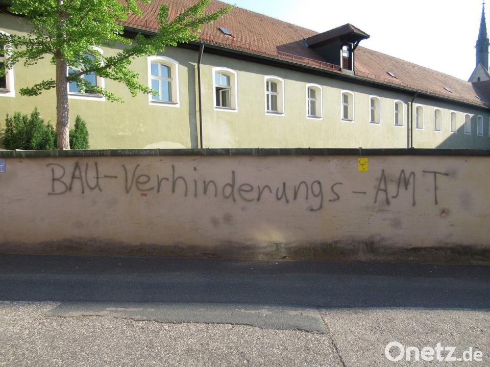 Insgesamt fanden sich vier Schriftzüge auf der Mauer, die sich gegen das Amt an sich, sowie gegen einen einzelnen Bediensteten dort richten. So war auch die Parolen "Die Stadt den Bürgern, nicht den Staatsdienern" und "Bürgernähe" über eine Länge von insgesamt 25 Metern und einer Höhe von rund zwei Metern zu lesen. Derzeit werden einschlägige Ermittlungen wegen Sachbeschädigung geführt.