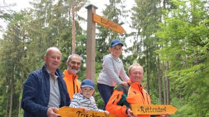 Sie weisen Wanderen wieder den Weg: "Vier Tafeln" auf dem Steinköppl bei Ellersdorf stehen wieder