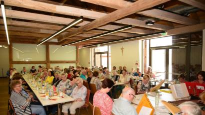 Die Seniorengruppe St. Pankratius hatte zur Vatertags- und Muttertagsfeier in den Steinstadel eingeladen. Die zehnköpfige Musikgruppe "Vielsaitig" bot ein Programm, das dem Namen alle Ehre machte. Bei den gemeinsamen Liedern wie "Am Brunnen vor dem Tore" oder "Der Mai ist …