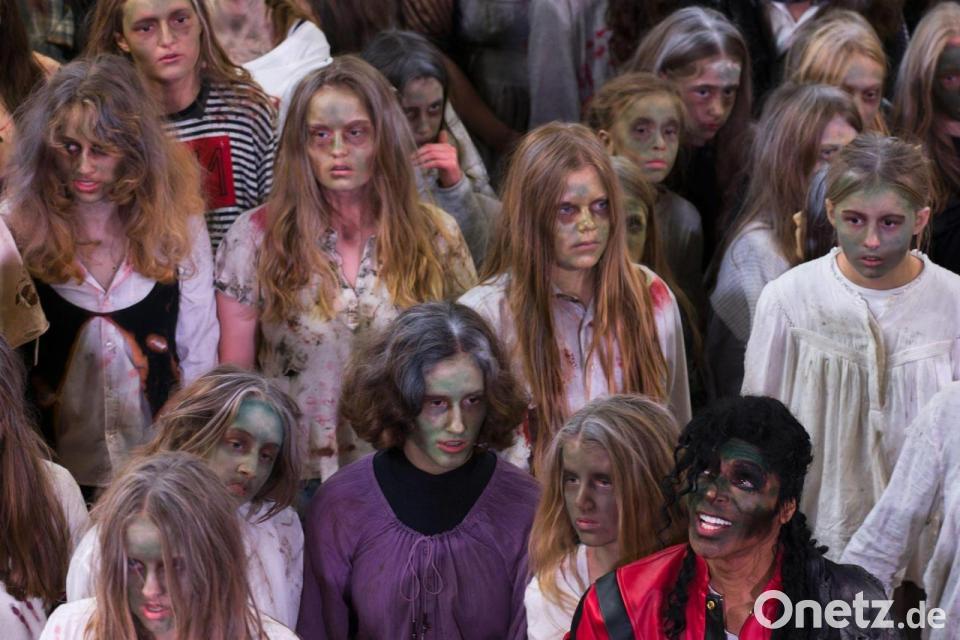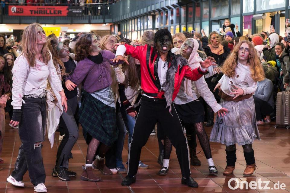 Zu Halloween haben als Zombies verkleidete Menschen ihren großen Auftritt im Hamburger Hauptbahnhof. Etwa 150 Tänzerinnen und Tänzer aus Deutschland, Österreich und der Schweiz führten die berühmte Thriller-Choreographie von Michael Jackson auf, wie das Unternehmen Stage Entertainment mitteilte. Organisiert wird die Gruselshow von einem Fanclub.