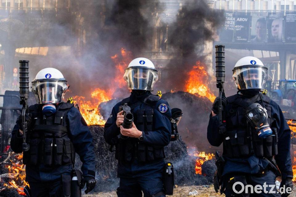 Die Polizei setzte Wasserwerfer gegen Demonstranten ein, die versuchten, Absperrungen zu durchbrechen, wie die Polizei auf Nachfrage der Deutschen Presse-Agentur bestätigte. Zudem wurden Brände gelegt, Pyrotechnik gezündet und Tränengas eingesetzt, wie auf Bildern zu sehen war. Die Angriffe der Demonstranten mit Kartoffeln und Feuerwerk richteten sich auch gegen das Europaparlament.