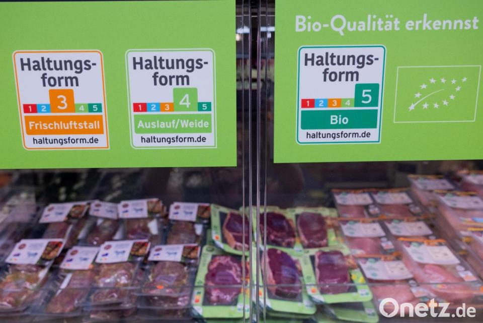 Bei Rindfleisch stammten 2023 hingegen noch mehr als drei Viertel aus Stufe 1. Die Formen 3 und 4 machten ein Fünftel aus. Die Daten beziehen sich auf Frischfleisch und Zubereitungen wie Hackfleisch der Eigenmarken, die einen Großteil des Angebots ausmachen.
