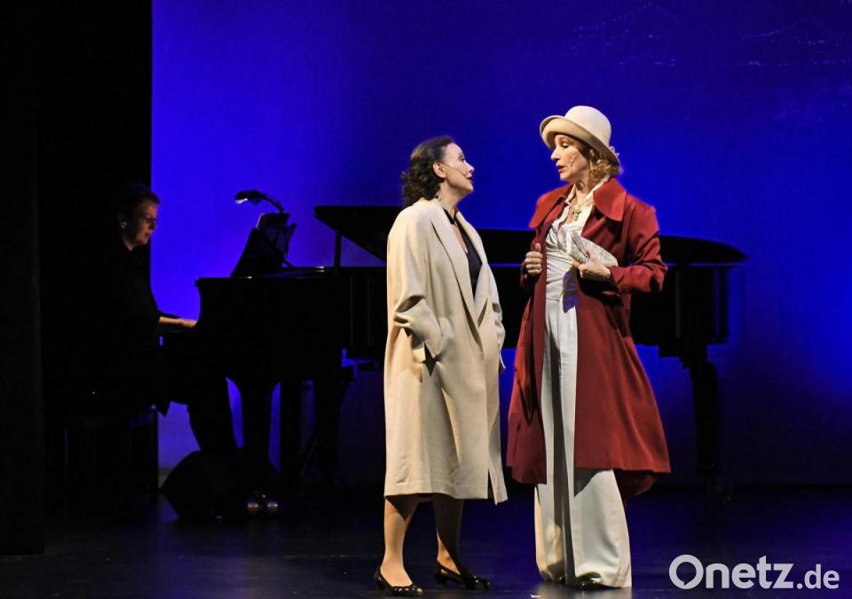 Es beginnt quasi Tür an Tür auf einem New Yorker Damenklo: In einer Kabine schluchzt Edith Piaf herzzerreißend, aus der anderen kommen tröstende Worte – nicht, wie vermutet, von der Toilettenfrau, sondern von der berühmten Marlene Dietrich. Es ist der Beginn einer wunderbaren Freundschaft, die es tatsächlich gab, über deren Details aber nur wenig bekannt ist. David Große Boymann und Thomas Kahry haben sich dazu das Theaterstück mit Musik "Spatz und Engel" ausgedacht, das im Stadttheater Amberg Tourneepremiere feierte. Die spannenden Episoden sind mit den unsterblichen Welthits der beiden so ungleichen Frauen reich unterfüttert.