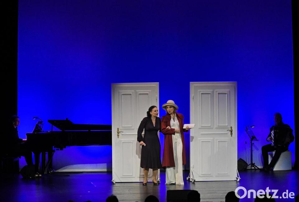 Glamourmode für die eine und schlichte Schnitte für die andere schneiderte Ulla Röhrs den beiden auf den Leib. Regisseur Daniel Große Boymann inszenierte die Zeitreise mit Fingerspitzengefühl ins gelungene Bühnenbild von Tom Grasshof. Im Bühnenhintergrund lieferten Cordula Hacke (Klavier) und Vassily Dück (Akkordeon) den typischen Sound. Richtig langer Beifall, respektvoll für die Künstlerinnen von damals und von heute.