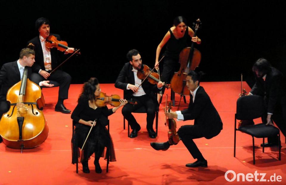 Brahms, Tschaikowsky, Mozart, alle Großen der Musik erklangen in Anspielungen, wobei dem Ensemble stets ein besonderer Gag einfiel, der die "Klassik" komödiantisch "erhöhte". Da fehlte plötzlich ein Stuhl, und in einer Art "Reise nach Jerusalem" entstand während des Spiels eine "Konkurrenz" um die Sitzgelegenheiten. Plötzlich mutierte einer der Streicher zum Dirigenten Jordi Purti, der in der Folgezeit sowohl die musikalischen wie die "körperlichen" Präsentationen prägte. Unglaublich fast, wie die Choreografie seine Bühnenaktionen mit den jeweiligen spielerischen wie schauspielernden Reflexionen seiner Musiker verband.