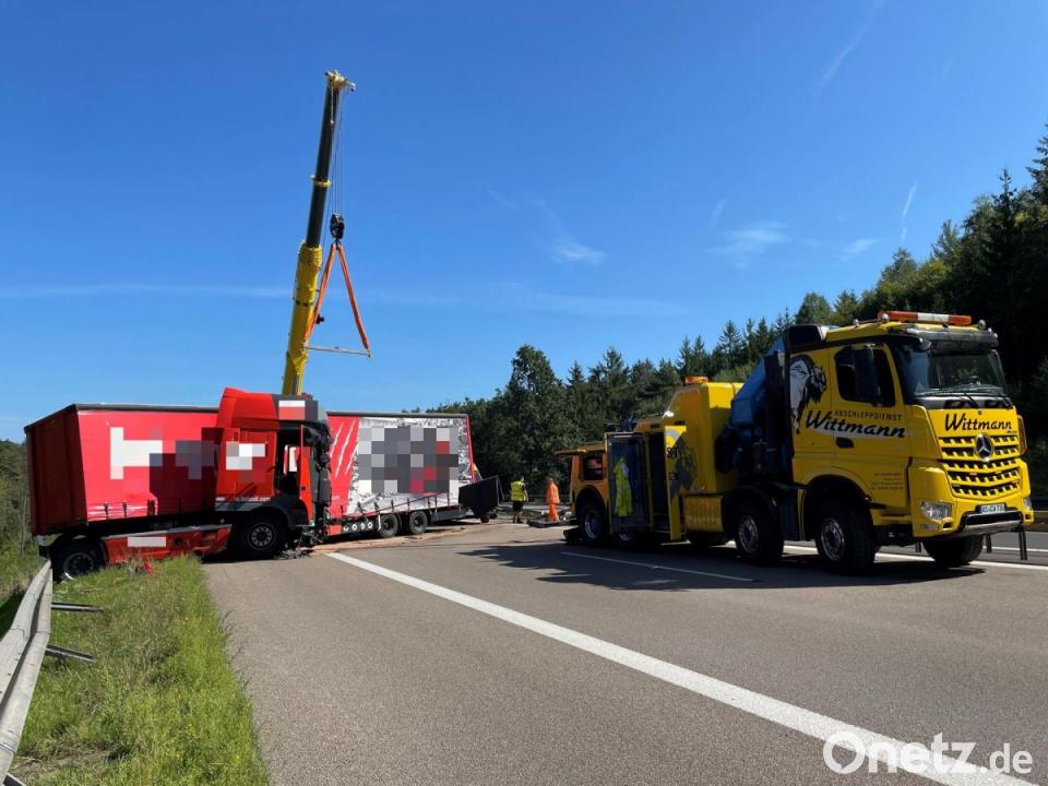 Um die beiden Autobahn-Fahrspuren wieder frei zu bekommen, musste ein großer Autokran eingesetzt werden, der den Laster zurück in die Spur hievte. Der Verkehr staute sich ab Amberg-Süd zurück bis zur Anschlussstelle Schmidgaden. Die Kreisbrandinspektion Amberg-Sulzbach und mehrere Feuerwehren, aus Haselmühl, Theuern, Ebermannsdorf, sowie die Verkehrspolizei Amberg, das THW und die Autobahnmeisterei Lauterhofen waren im Einsatz.