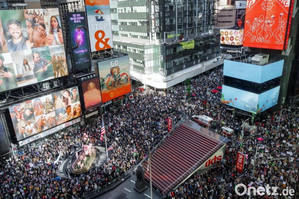 Eine Protest-Helferin sagte der Deutschen Presse-Agentur am Times Square, die Menge habe die Straße gen Süden bis zum Union Square gefüllt - also über mehrere Kilometer. Proteste gab es zudem in der Hauptstadt Washington, Boston, Atlanta, Chicago, Los Angeles und zahlreichen weiteren Städten. In Pittsburgh im Bundesstaat Pennsylvania gingen Tausende Menschen auf die Straße, wie eine dpa-Reporterin berichtete. Auch in kleineren Orten wie Bethesda im Umland von Washington und im Sarasota County in Florida beteiligten sich Menschen an den Kundgebungen.