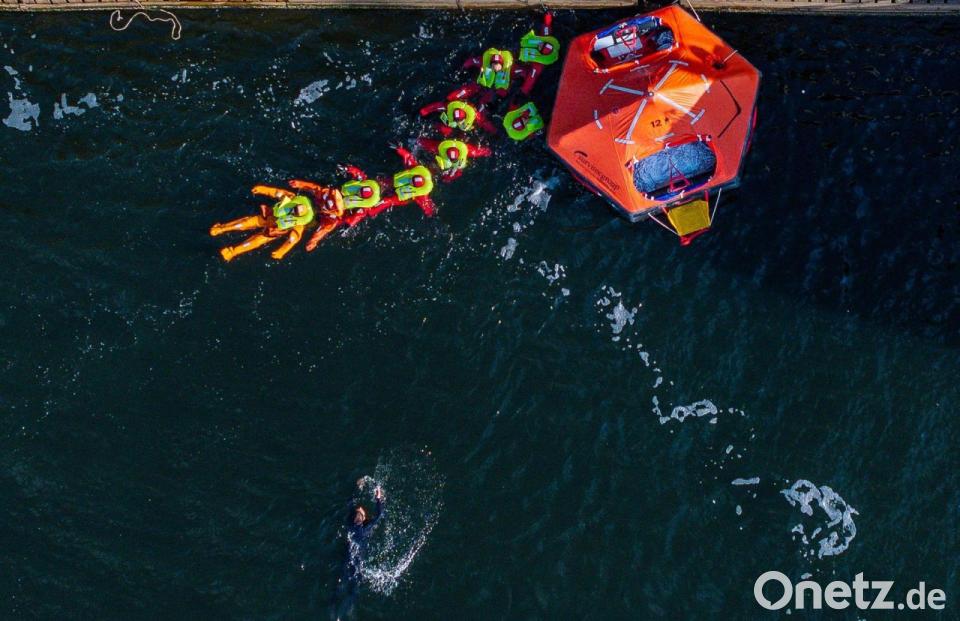 Es ist bereits das dritte Mal, dass Astronauten in Rostock das Überleben auf dem Wasser trainieren. Heiko Seefeldt, Geschäftsführer der ISC Training & Assembly GmbH, sagt im Ernstfall komme es auf Teamarbeit an. Die Astronauten üben unter anderem, sich gegenseitig festzuhalten. „Einer alleine kann nicht lange durchhalten. Er wird irgendwo hingetrieben werden, also muss man zusammenarbeiten und zusammenhalten.“