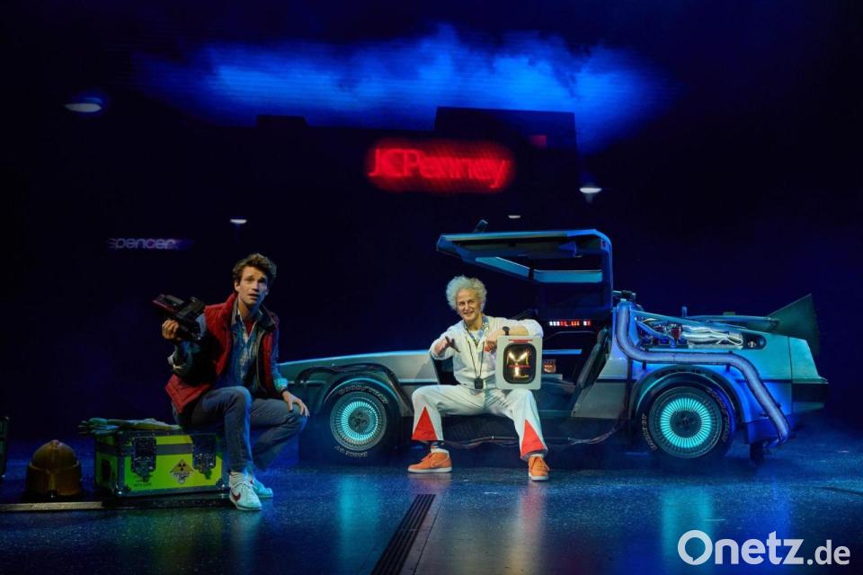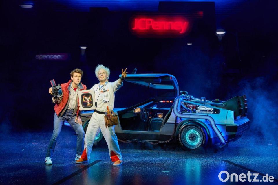 Das coole Auto ist der Star im Musical, ein fast originaler Nachbau des DeLorean aus „Zurück in die Zukunft“. Die Kosten liegen laut Stage Entertainment bei 450.000 Euro. Der Wagen blinkt, raucht, kann sich um 360 Grad drehen und scheint über die Bühne zu rasen. Oft gab es Szenenapplaus für die Zeitmaschine, die den Fans der Film-Trilogie Legendäres wie den „Fluxkompensator“ bietet.