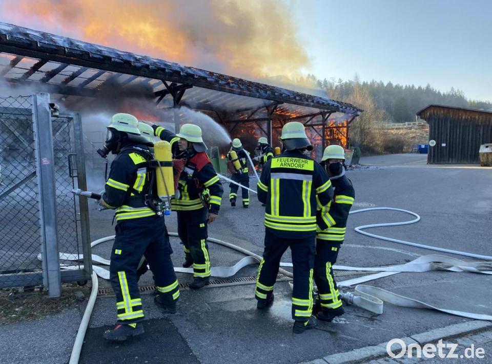 Am Donnerstag, 3. März, traf gegen 16.05 Uhr die Meldung zum Feuer in der Integrierten Leitstelle ein. Beim Eintreffen der Feuerwehr stand eine von zwei Hallen auf dem Gelände des Wertstoffhof in der Arnbrucker Straße bereits in Vollbrand. Trotz eines Großaufgebotes der umliegenden Feuerwehren brannte die Halle komplett nieder.