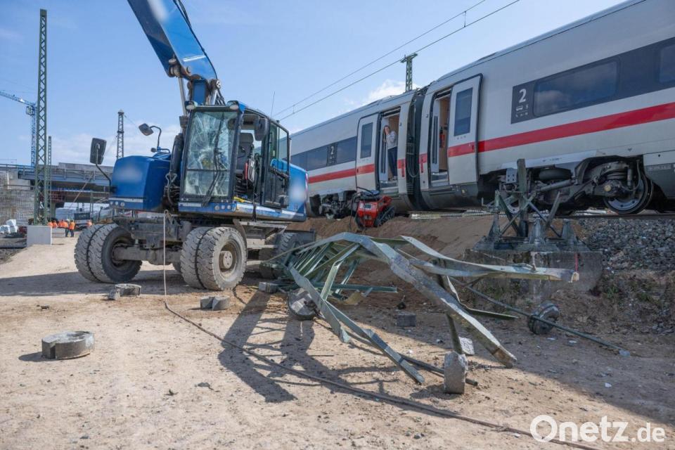 Laut Deutscher Bahn wurde bei dem Unfall auch die Oberleitung beschädigt, die repariert werden müsse. „Nachdem unsere Fachleute ein Schadensbild erstellt haben, können wir prognostizieren, wie lange die Reparaturarbeiten dauern werden“, so ein Bahn-Sprecher. „Zur Unfallursache ermitteln die Behörden.“ Die Reisenden des betroffenen ICE sollten in Kürze ihre Fahrt mit einem Ersatzzug fortsetzen können.