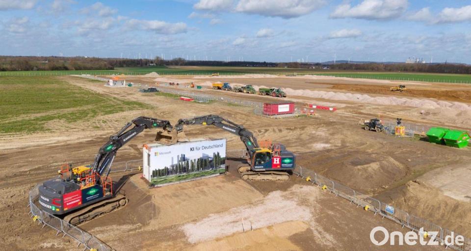 Noch ist es Ödland mit plattgewalzter Erde, doch schon bald soll das 20 Hektar große Areal am Rande eines Gewerbegebiets in Bergheim zu einer Keimzelle eines starken Wirtschaftswachstums im Digitalzeitalter werden. Bei einem symbolischen Spatenstich kamen am Donnerstag Vertreter aus der Politik und Wirtschaft ins Rheinische Revier westlich von Köln, um Fortschritte bei einer wegweisenden milliardenschweren Investition des US-Technologieriesen Microsoft zu feiern. Das Thema im Überblick.