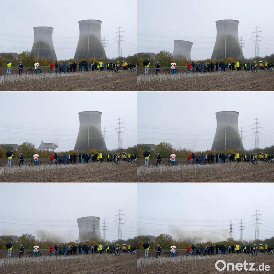 Nach Polizeiangaben beobachten rund 30.000 Schaulustige insbesondere aus Bayern und dem nahen Baden-Württemberg die spektakuläre Zerstörung eines Symbols des Atomzeitalters. Die Behörden hatten auf einer Länge von mehreren Kilometern Straßenabschnitte halbseitig gesperrt, um Parkplätze für die Zuschauerinnen und Zuschauer zu schaffen.