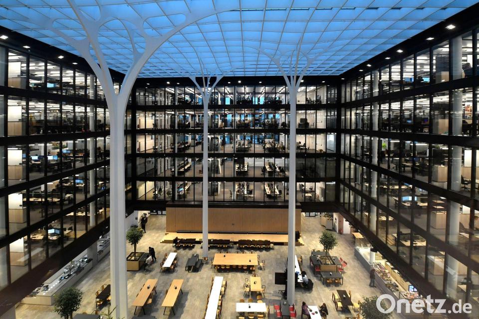 Ungeachtet der andauernden Wirtschaftskrise in Deutschland sind in der Tech-Branche nach wie vor qualifizierte Fachkräfte gesucht. Das neue Gebäude ist mit allerlei Annehmlichkeiten für die Belegschaft ausgestattet, unter anderem einem Kino und Yogaräumen.