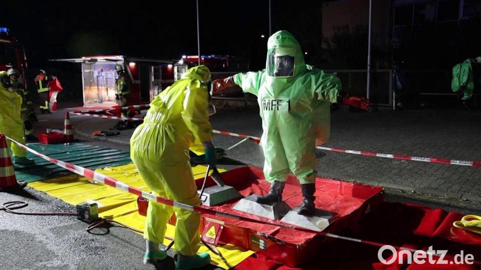 Auslöser der Gefahrstoffwolke war laut Kreisbrandinspektion ein „sehr großes Metallteil“, das in ein Säurebad mit 6.000 Litern Salpetersäure geraten war und dort eine chemische Reaktion ausgelöst hatte.