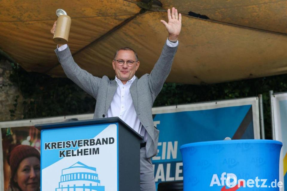 AfD-Chef Tino Chrupalla sieht seine Partei unaufhaltsam auf dem Weg zur Regierungsübernahme. Wenn nicht schon nächstes Jahr in Sachsen-Anhalt, dann spätestens 2029 auf Bundesebene, sagte Chrupalla beim politischen Frühschoppen seiner Partei im niederbayerischen Abensberg vor mehreren hundert Zuhörern – wenn auch nicht auf dem Volksfest, sondern etwas abseits im Schlossgarten. „Wir werden wieder dieses Schiff auf Vordermann bringen“, sagte er. Die AfD habe die Lösungsvorschläge und Inhalte, die die Bürger hören wollten. Man werde das Land blau machen, sagte er mit Blick auf die AfD-Parteifarbe.