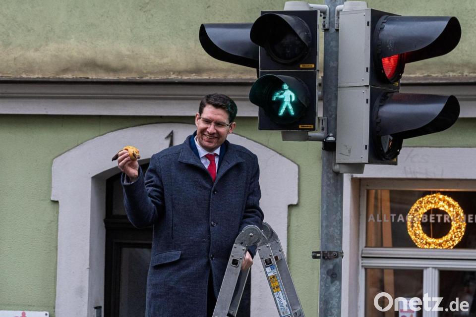 Mit dem Franken-Deluxe-Ampelmännchen - klassisch im Schnitt, aber mit Wurst in der Hand - zählt Coburg nun zu den wenigen Städten mit einem eigenen Ampelmaskottchen und vermutlich der einzigen mit Fleischbeilage.