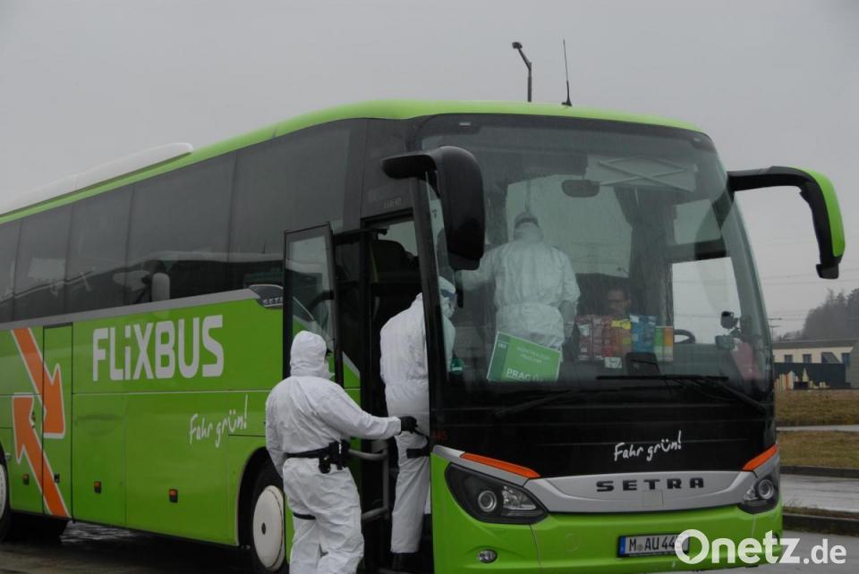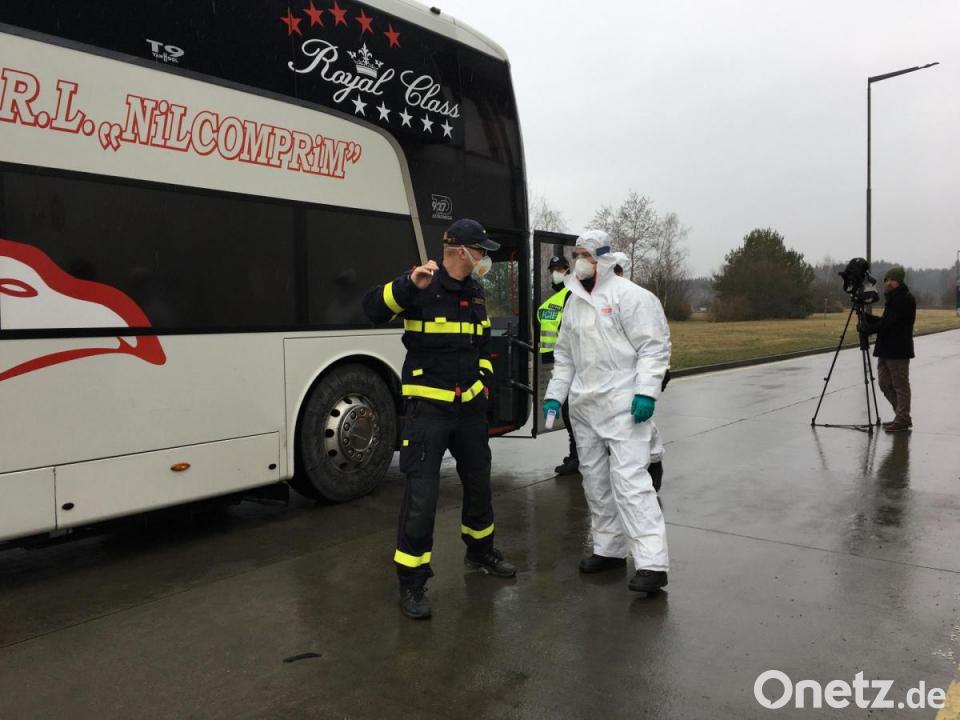 Anders bei Bussen: In Waidhaus werden aktuell sämtliche Reisebusse gestoppt. Vertreter der tschechischen Gesundheitsbehörde - in weißer Schutzkleidung, mit Mundschutz und Schutzbrille - betreten die Busse und messen bei allen Passagieren Fieber. Am Montagvormittag blieb ein Flixbus Nürnberg-Prag zwei Stunden hängen: Vier Insassen hatten über 38,5 Grad Celsius Körpertemperatur, informierte ein Sprecher der Feuerwehr. Die betroffenen Fahrgäste, vier Deutsche, sagten, sie hätten geschlafen und seien deshalb warm. Die tschechischen Behörden ließen den Bus kurzerhand zwei Stunden stehen. Nach einem Nachmessen gab es dann das "go".
