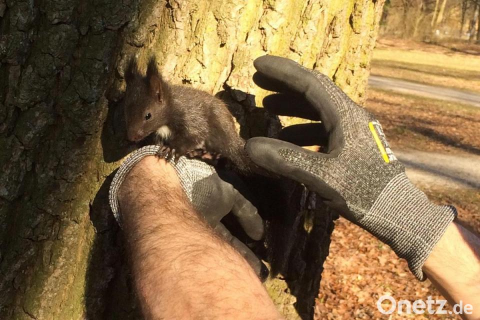Da die Eichhörnchen am Boden Hunden und Katzen schutzlos ausgeliefert gewesen wären, bemühten sich die Einsatzkräfte am Mittwoch, das Trio ins Nest zurückzubefördern. Tierrettung ist im Bayerischen Feuerwehrgesetz verankert. Nachdem mehrere Versuche gescheitert waren, kam die Leiter zum Einsatz und jedes Eichhörnchen wurde auf einen Ast gesetzt. „Dort flutschten sie förmlich aus der Hand und kletterten gerne in Richtung Nest, in Sicherheit.“