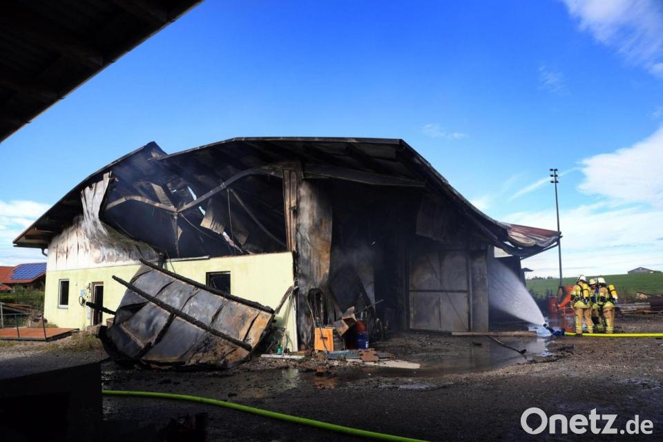 In Schwaben war zuvor bereits eine Maschinenhalle bei einem landwirtschaftlichen Anwesen völlig ausgebrannt. Verletzt worden sei niemand, teilte die Polizei mit. Laut einem Sprecher der Polizei entwickelte sich bei dem Feuer in Bidingen (Landkreis Ostallgäu) am Samstag viel Rauch. Für die Löscharbeiten musste die Halle nahezu vollständig niedergerissen werden. Der Brand entstand vermutlich durch einen technischen Defekt. Den Schaden schätzen die Ermittler auf mindestens 700.000 Euro.