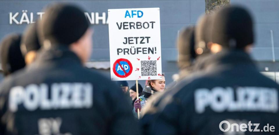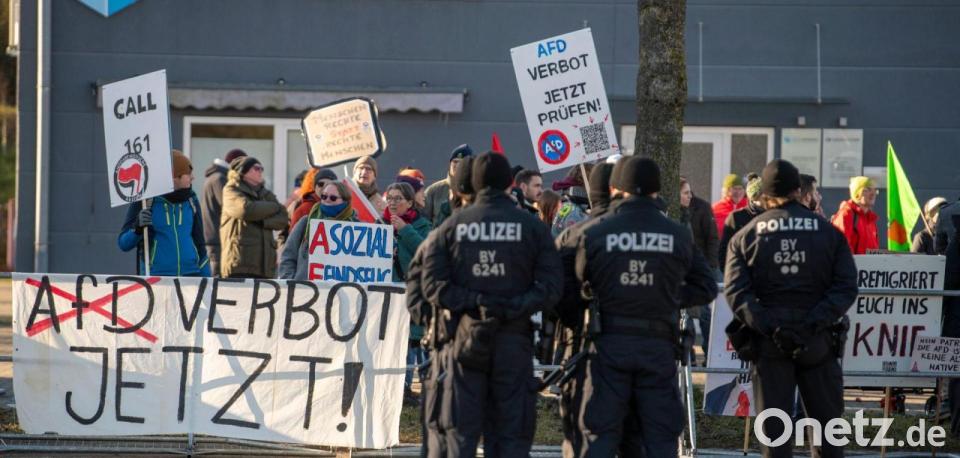 Die Teilnehmerinnen und Teilnehmer skandierten unter anderem „Nazis raus“; auf ihren Plakaten forderten sie ein AfD-Verbotsverfahren. Zahlreiche Einsatzkräfte der Polizei waren vor Ort.