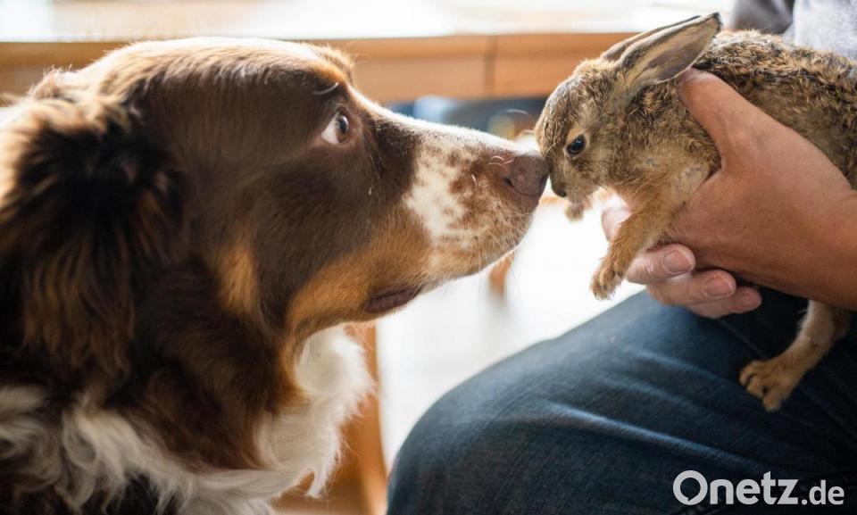 Der Australian-Shepherd-Mischling hatte den Feldhasen vor etwa drei Wochen im Garten der Familie im unterfränkischen Sand am Main (Landkreis Schweinfurt) aufgespürt. Auf den ersten Blick habe er ausgesehen, wie ein durchnässtes Wollknäuel, das Lasko mit seiner Nasenspitze zum Haus stupste, erzählt Mahr. Beim genauen Hinsehen erkannte er das Feldhasen-Baby - unterkühlt und hungrig. Nicht einmal so groß wie die Hand des 65-Jährigen soll Hasi gewesen sein.
