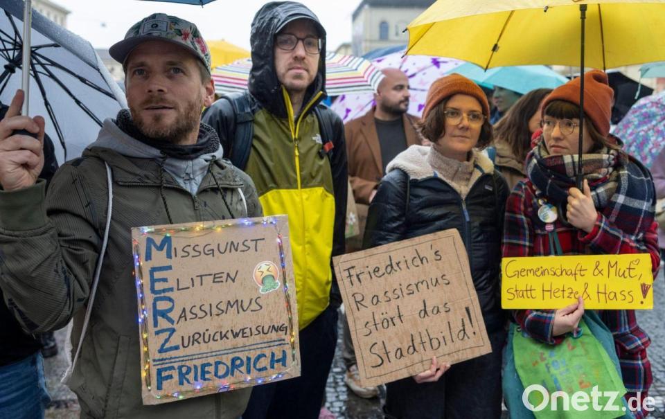 Etwa 250 Menschen haben am Münchner Odeonsplatz gegen die „Stadtbild“-Aussage von Bundeskanzler Friedrich Merz (CDU) demonstriert. Ursprünglich waren nach Angaben des Kreisverwaltungsreferats 5.000 Teilnehmer zu der Demonstration am Sonntag angekündigt. Der Regen könnte ein Faktor gewesen sein, sagte ein Polizeisprecher. Die Veranstaltung sei ohne besondere Vorkommnisse abgelaufen. Die Teilnehmer demonstrierten mit Schildern auf denen unter anderem „Gemeinschaft und Mut statt Hass und Hetze“ stand.