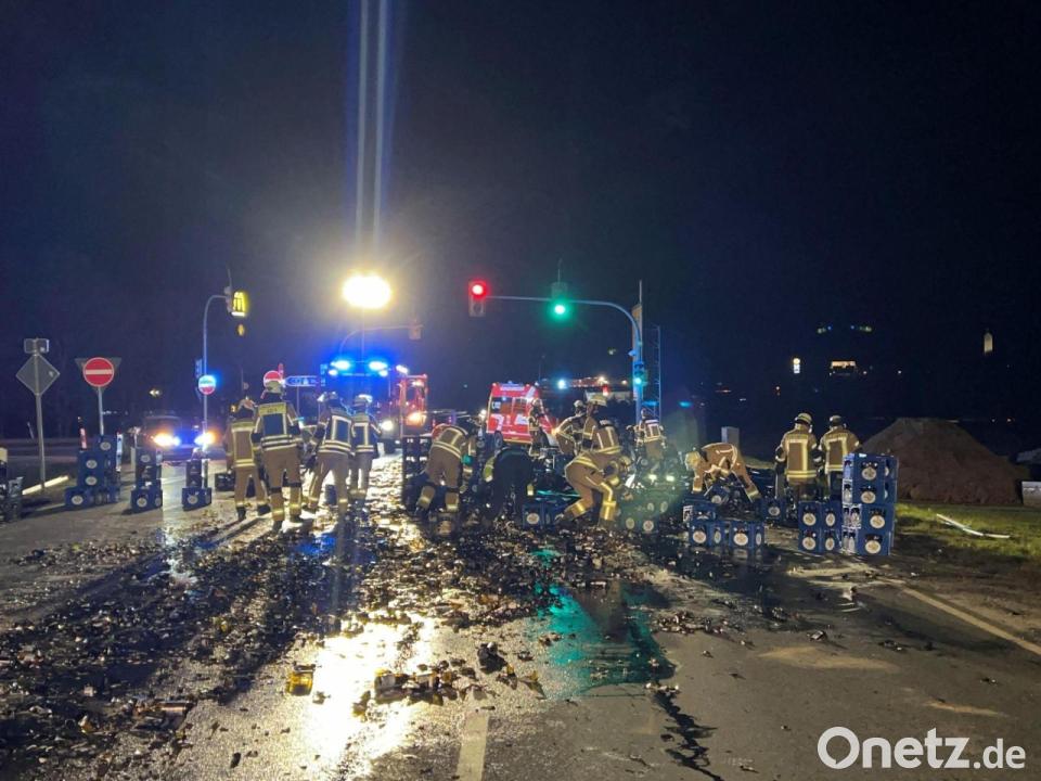 Die Kästen und zerbrochenen Flaschen seien über die ganze Fahrbahn verteilt gelegen. Die B303 wurde daraufhin für rund vier Stunden gesperrt und gereinigt, wie der Sprecher sagte. Verletzt wurde demnach niemand. Den Schaden schätzt die Polizei auf etwa 50.000 Euro.