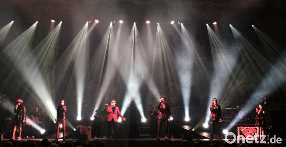 Begleitet werden der Staffel-Gewinner Samuel Rösch, die drei weiteren Finalisten Benjamin Dolic, Jessica Schaffler, Eros Atomus Isler sowie die Wildcard-Gewinner James Smith Jr. und Linda Alkhodor von einer mehrköpfigen Live-Band sowie zwei Background-Sängern. Und es ist auch mehr als passabel, was die „Talents“ – von Stars sollte man noch nicht sprechen - in den über zwei Stunden abliefern. Sie stehen zu sechst auf der Bühne, singen im Duett, mal auch zu dritt oder viert oder auch als Solisten – den Variationen ist keine Grenze gesetzt. Dem Publikum, darunter viele junge Fans mit entsprechenden T-Shirts, gefällt es und es wird kräftig geklatscht.