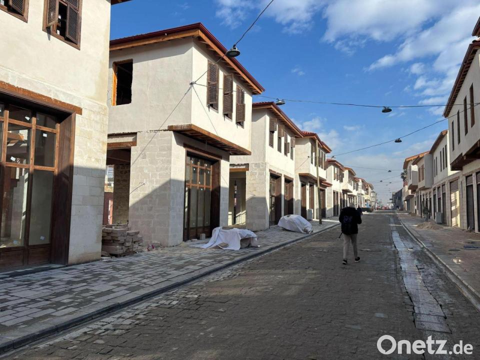 Rund um die Habibi-Neccar Moschee stehen rekonstruierte Häuser aus Stein und Holz. Eine kleine Einkaufsstraße ist fertig. Der Antiquitätenhändler Serkan Sincan sitzt als einziger vor einem Laden, den er erst mal mietfrei nutzen darf. Nach dem Erdbeben erlangte Sincan lokale Bekanntheit, weil er inmitten der Trümmer mit Musik und Optimismus versuchte, seine Landsleute aufzubauen. Noch sind die neuen Geschäfte hier leer und nicht vermietet, nur für Erdogans Besuch wurden die Läden mit Waren bestückt und geöffnet – und dann wieder geschlossen.