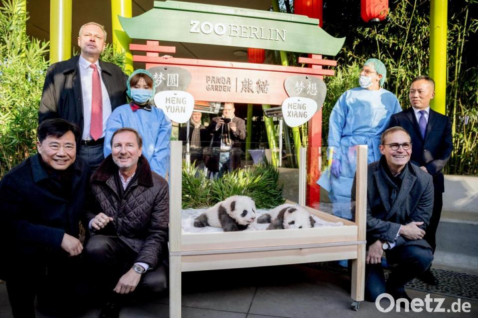 Der chinesische Botschafter betont im Zoo, dass die Geburt der seltenen Bären ein gutes Geschenk sei zum 25-jährigen Jubiläum der Städtepartnerschaft zwischen Berlin und Peking in diesem Jahr. Auch sei mit dem Nachwuchs, der Berlin "Glück und Freude" bringen könne, ein Wunsch von Chinas Staatspräsident wahr geworden. Weltweit seien in diesem Jahr insgesamt nur 60 Pandas geboren worden, davon hätten 57 überlebt, sagte Wu Ken.