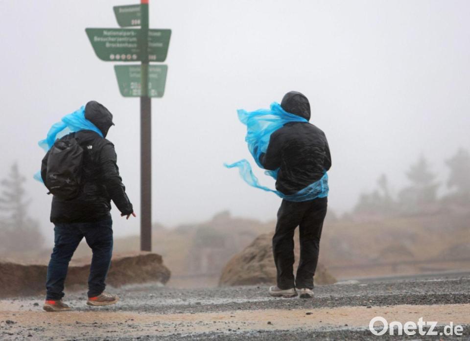 Sturmtief "Joshua" - Sachsen-Anhalt: Wanderer gehen am Nachmittag auf dem Brocken entlang.