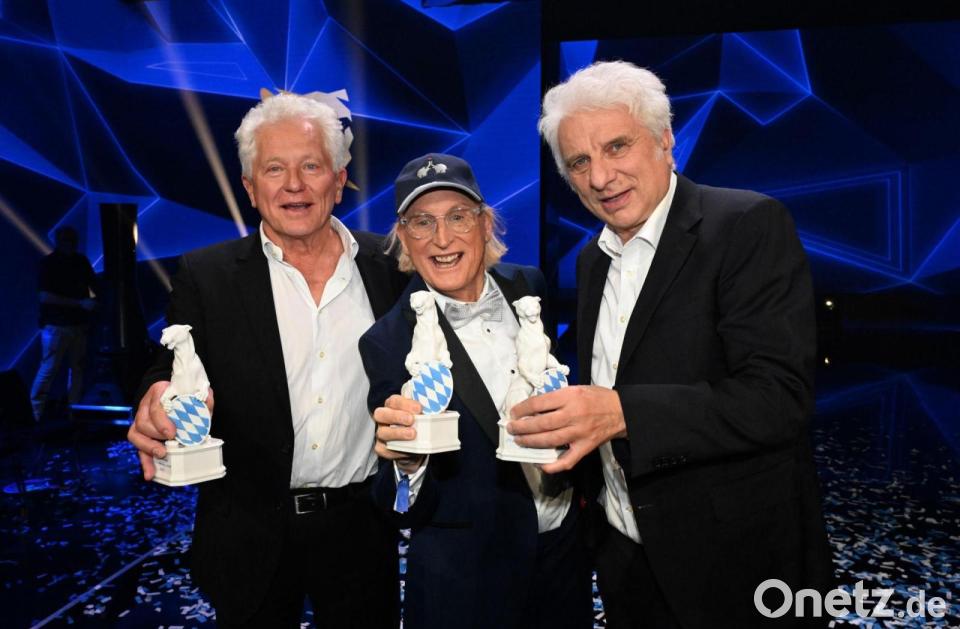 Die Preisträger Miroslav Nemec (l-r), Otto Waalkes und Udo Wachtveitl stehen bei der Verleihung des TV- und Streaming-Awards "Blauer Panther" in der BMW Welt in München auf der Bühne.