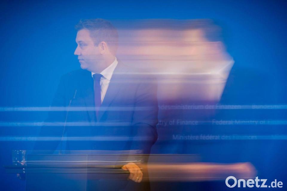 Bundesfinanzminister Lars Klingbeil äußert sich bei einer Pressekonferenz zur Sitzung des Arbeitskreises Steuerschätzung im Bundesfinanzministerium. (Wischeffekt durch Mitziehen)