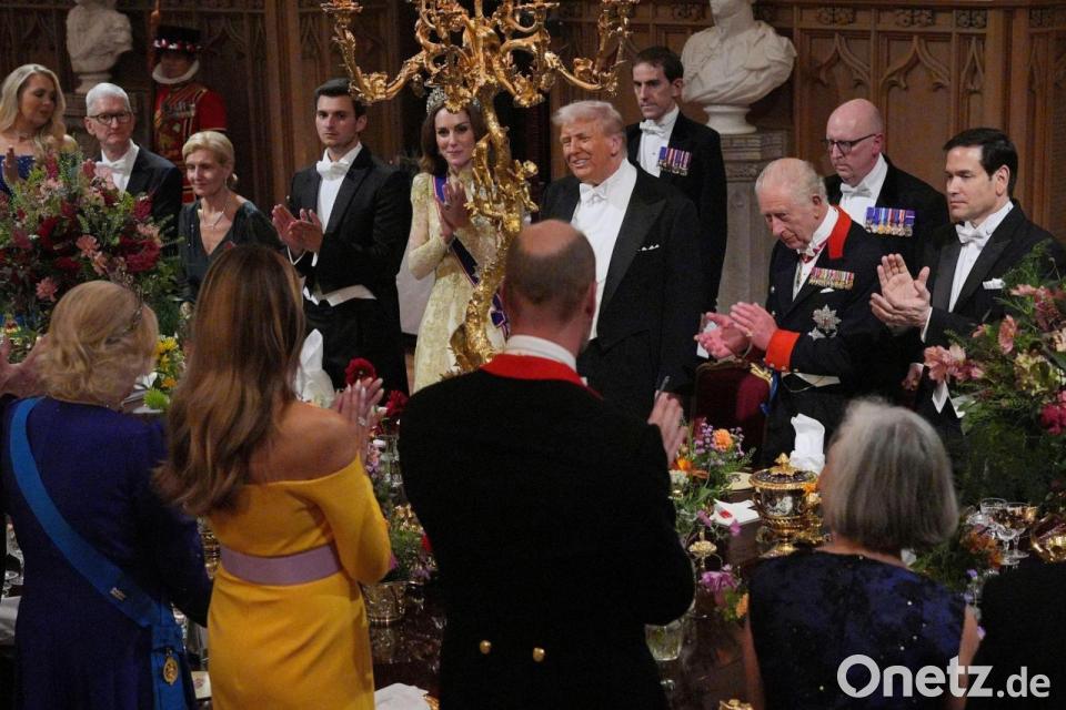 US-Präsident Donald Trump, der britische König Charles, Kate, Prinzessin von Wales, US-Außenminister Marco Rubio und Gäste nehmen am ersten Tag des zweiten Staatsbesuchs von US-Präsident Trump im Vereinigten Königreich am Staatsbankett in Schloss Windsor teil.