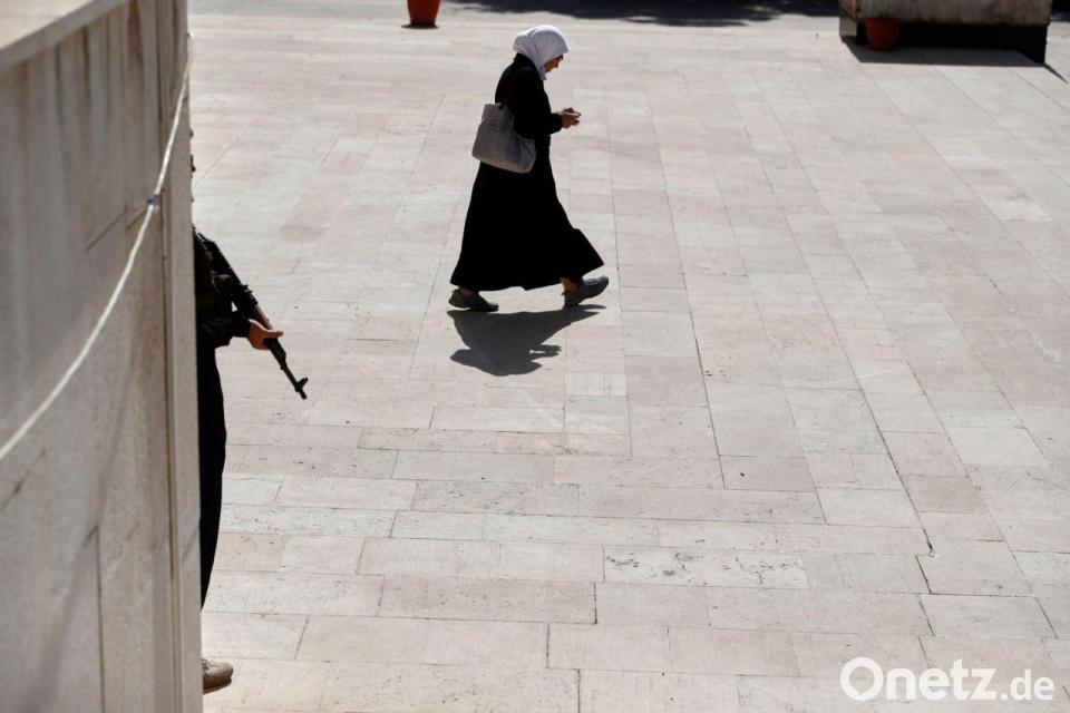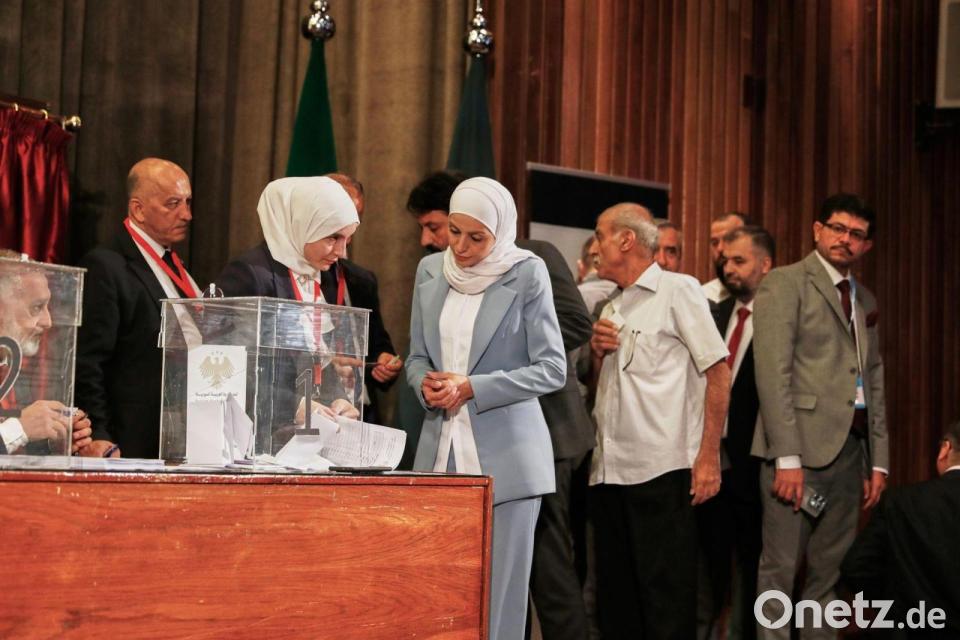 Eine Wählerin verlässt in Damaskus ein Wahllokal. In Syrien finden zum ersten Mal seit dem Sturz von Bashar al-Assad Parlamentswahlen statt.