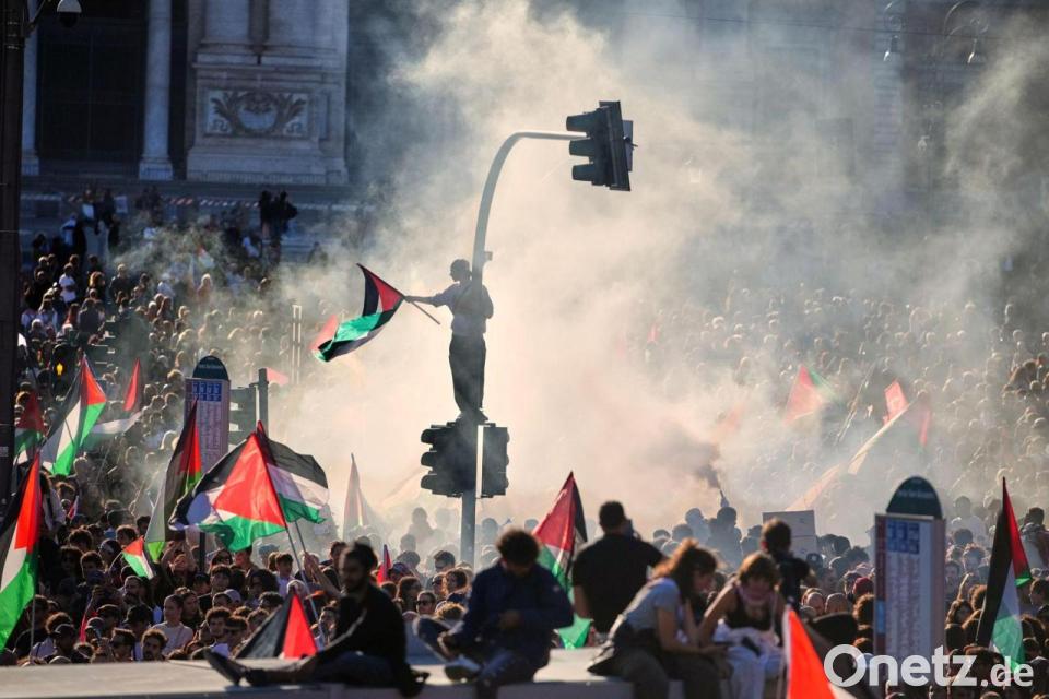 Pro-palästinensische Demonstranten versammeln sich auf dem San-Giovanni-Platz in Rom.