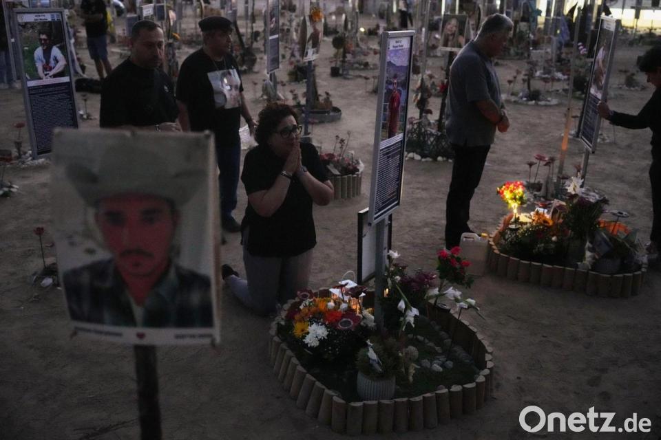 Menschen trauern am Jahrestag am Ort des Nova-Musikfestivals. Die terroristische Hamas hatte das Fest angegriffen, Hunderte Menschen getötet und viele weitere in den Gazastreifen verschleppt.