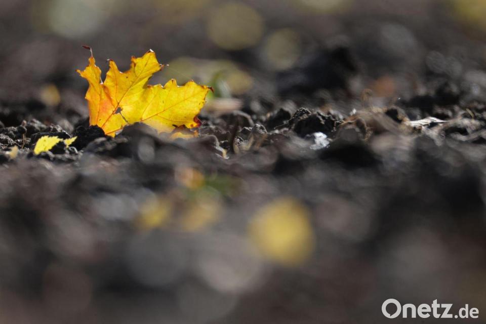 Jetzt kommt die goldene Herbsteszeit: Ein verfärbtes Blatt liegt auf einem Acker in Baden-Württemberg.