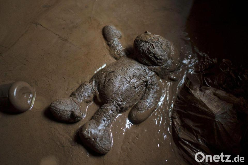 Ein Plüschtier liegt im Schlamm eines überschwemmten Hauses in Poza Rica, Mexiko.