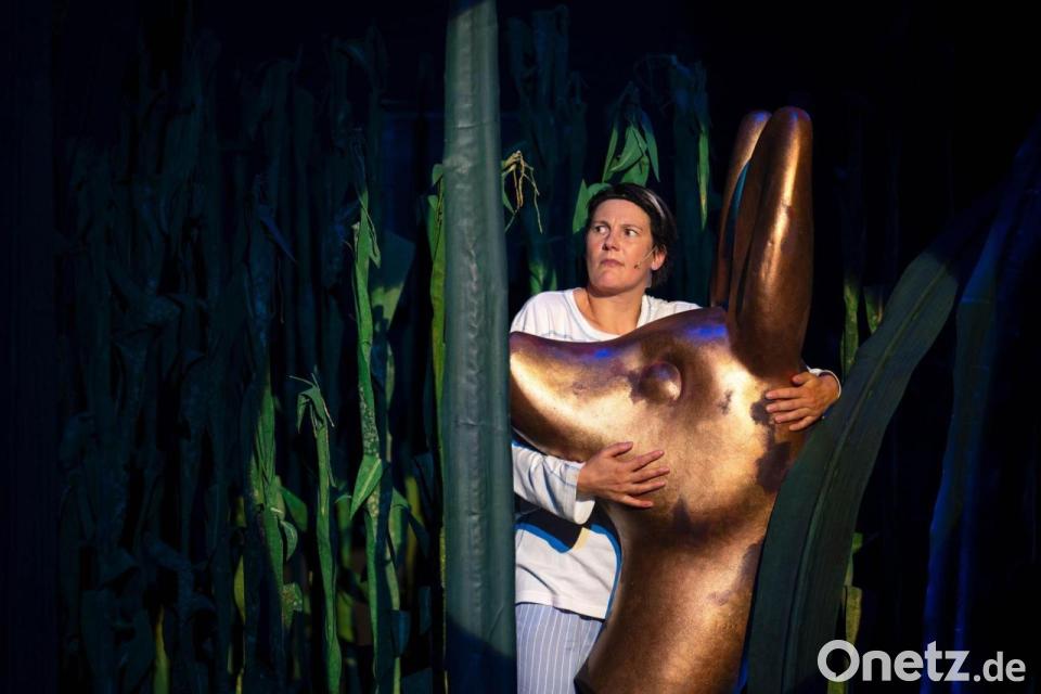 Lisa Guth agiert während der Fotoprobe am Theater Bremen für das Theaterstück „Der Zauberer von Öz - Eine Fußballtragödie“.
