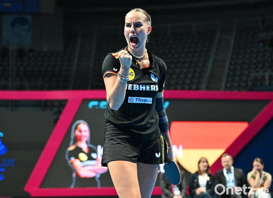 Annett Kaufmann jubelt bei der Tischtennis-EM. Mit zehn Titeln sind die deutschen Frauen Rekord-Europameisterinnen.