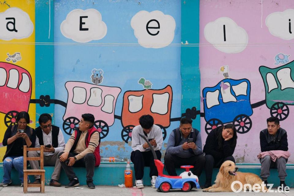 Menschen versammeln sich vor einem Wahllokal in La Paz, um nach Schließung der Wahllokale auf die Ergebnisse der Präsidentschaftswahlen in Bolivien zu warten.