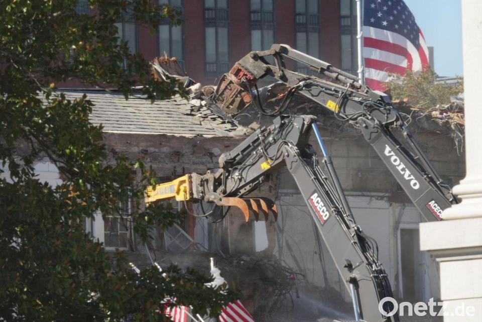 Abrissarbeiten an einem Teil des Ostflügels des Weißen Hauses in Washington.