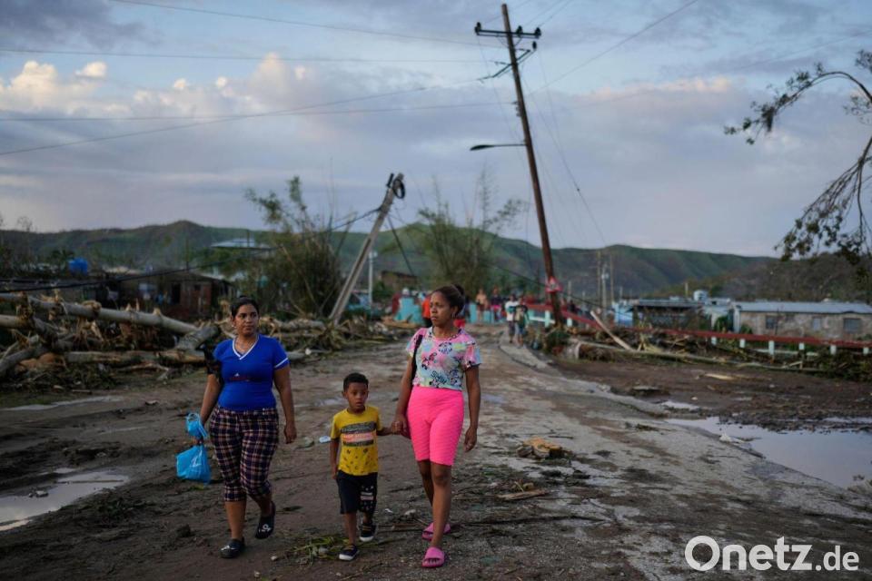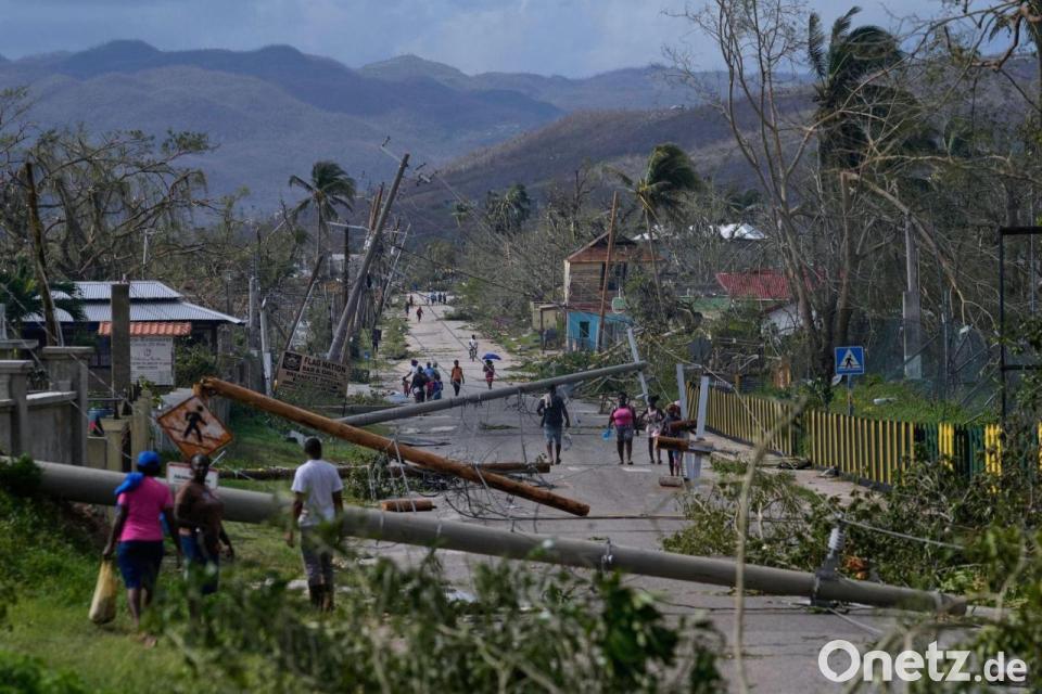 Anwohner gehen nach dem Hurrikan „Melissa“ durch ein verwüstetes Gebiet in Kuba.