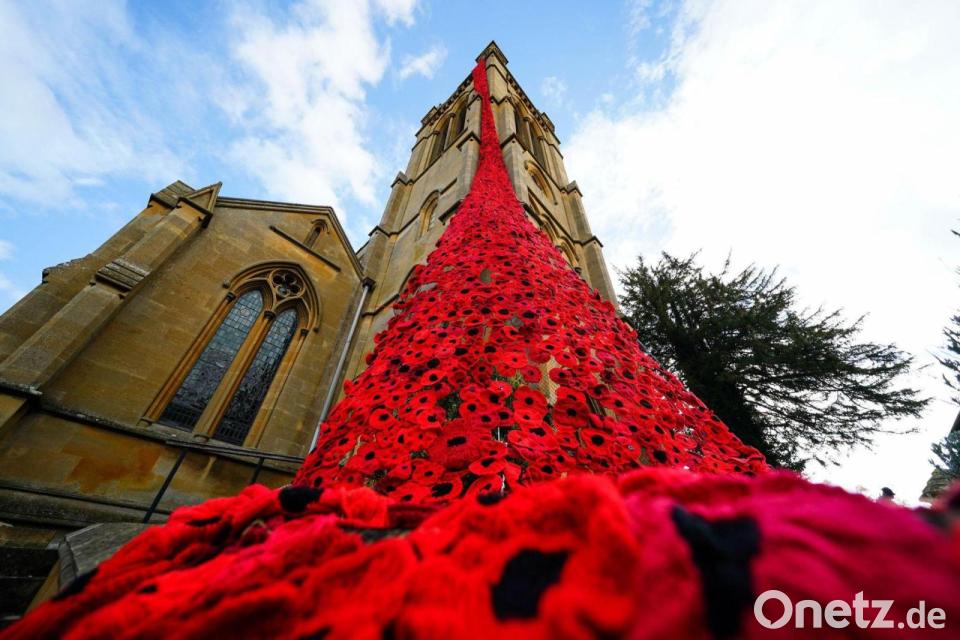 Für den Remembrance Day: Mohnblumeninstallation an der St. Michaels Kirche in Worcestershire.