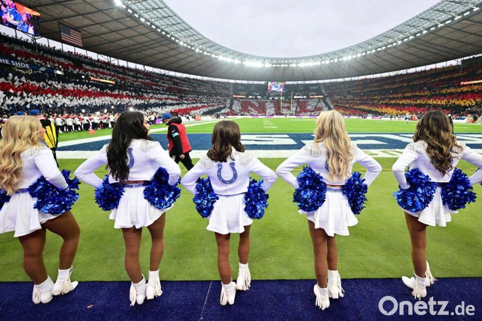 American Football: Profiliga NFL, Indianapolis Colts - Atlanta Falcons, Hauptrunde, Hauptrunde-Partien, 10. Spieltag, Olympiastadion Berlin. Die Cheerleader der Indianapolis Colts vor dem Spiel.