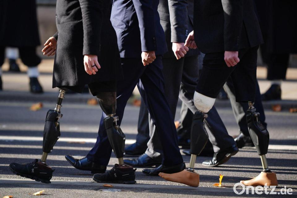 Weltkriegsgedenken am „Remembrance Sunday“ - London: Mitglieder der militärischen Wohltätigkeitsorganisation „Scotty's Little Soldiers“ marschieren während des Gedenkgottesdienstes am „Remembrance Sunday“ am Cenotaph in Whitehall vorbei.