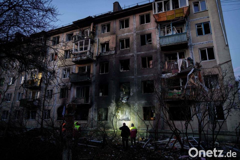 Beschädigtes Wohnhaus in Kiew: Behörden untersuchen Folgen russischen Angriffs